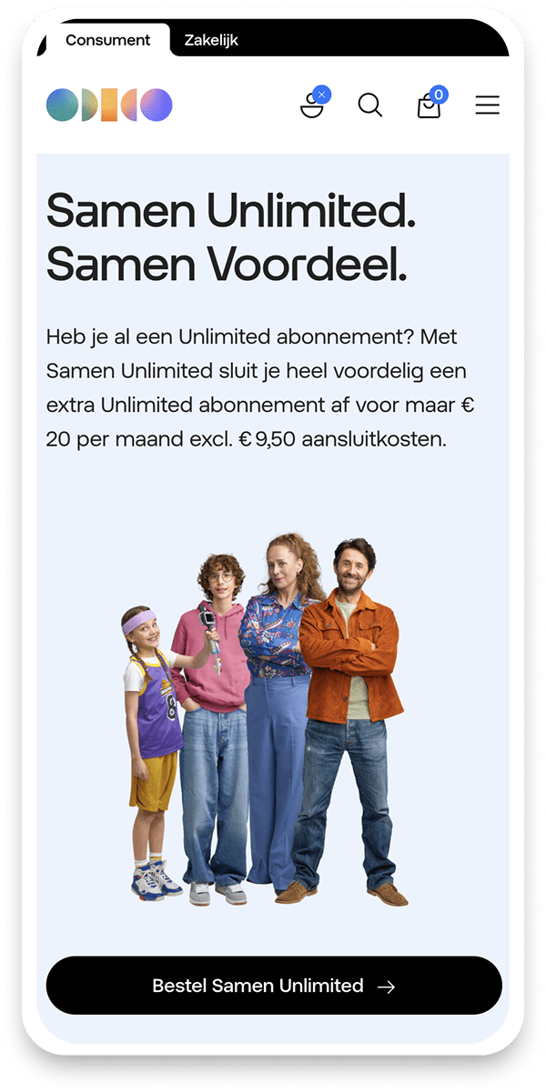Odido is the largest provider of Mobile, Fiber Optic, and TV services in the Netherlands. The company believes in building a society where everyone is connected. To reinforce this point Odido introduced a new proposition called ‘Samen Unlimited’. Specially designed to make Unlimited more social and accessible, strengthening user experience and sales growth.