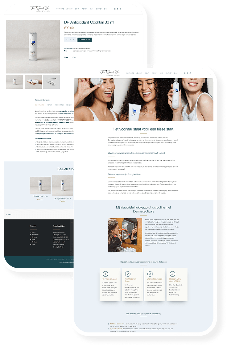 For The Skin Bar, I began with a base template and transformed it into a fully customized WordPress website with a seamlessly integrated e-commerce platform. The entire setup was designed with a clear and logical structure, ensuring that the client can easily make updates or small adjustments herself whenever needed. By configuring all components in an intuitive and user-friendly way, the website empowers the client to stay flexible and in control of content and shop management.